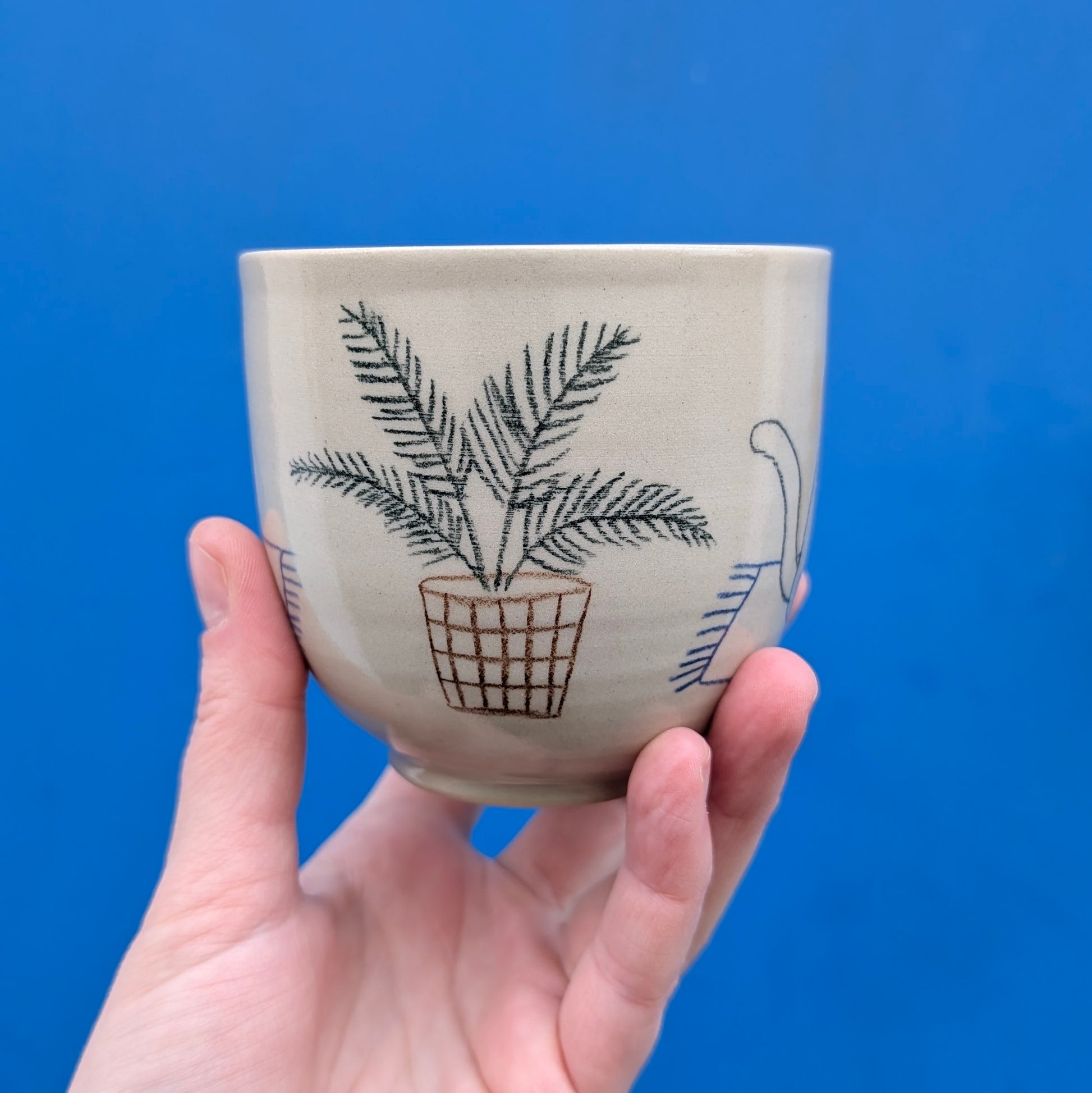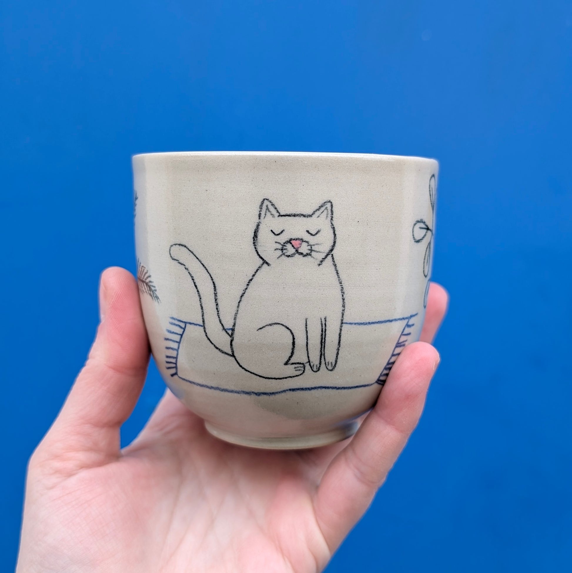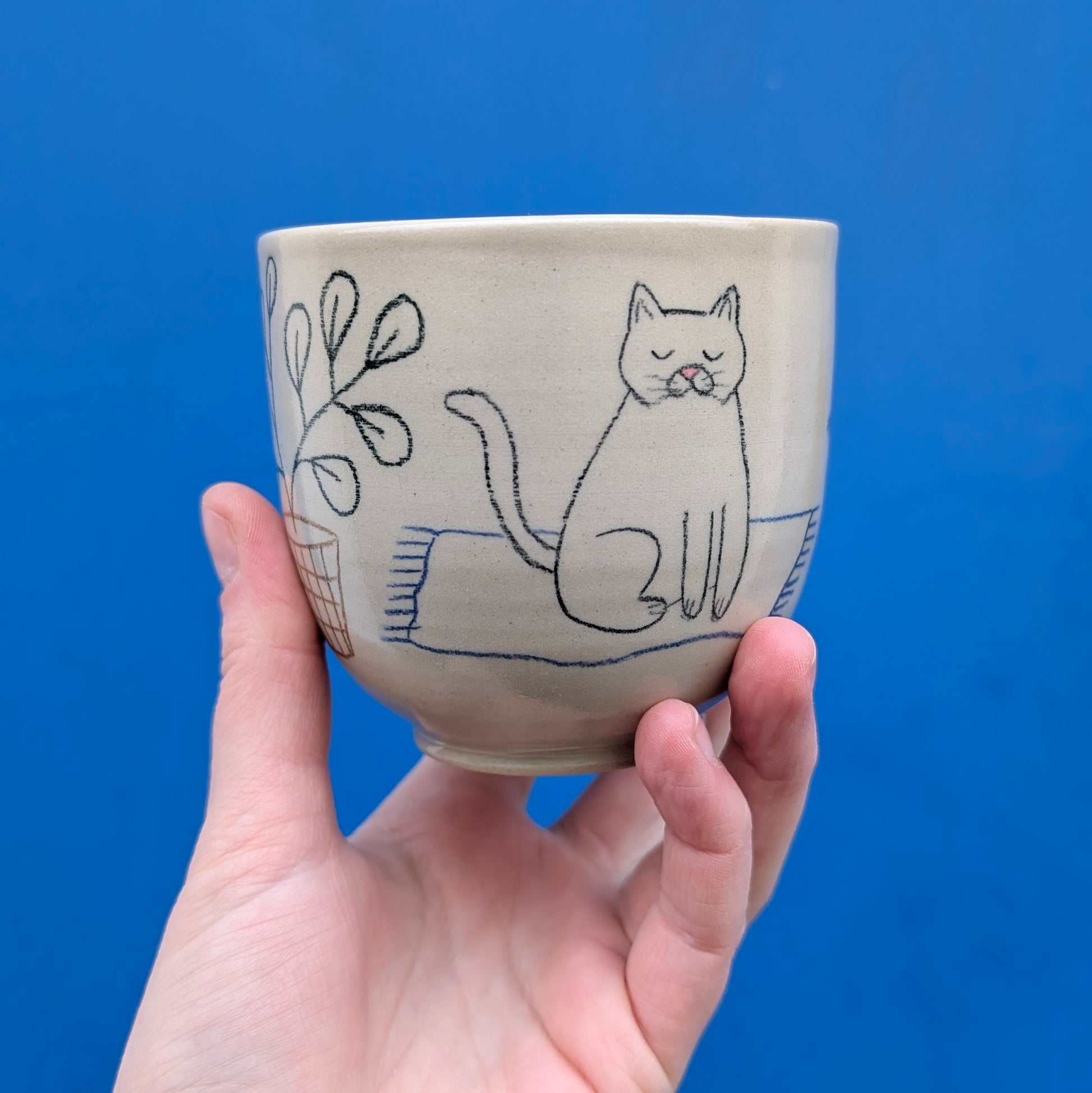 Šálka je ručne točená na hrnčiarskom kruhu, vyrobená z kameniny, pálenej na 1230 stupňov. Vďaka vysokému výpalu je šálka odolná, trvácna a môžete ju umývať v umývačke riadu.