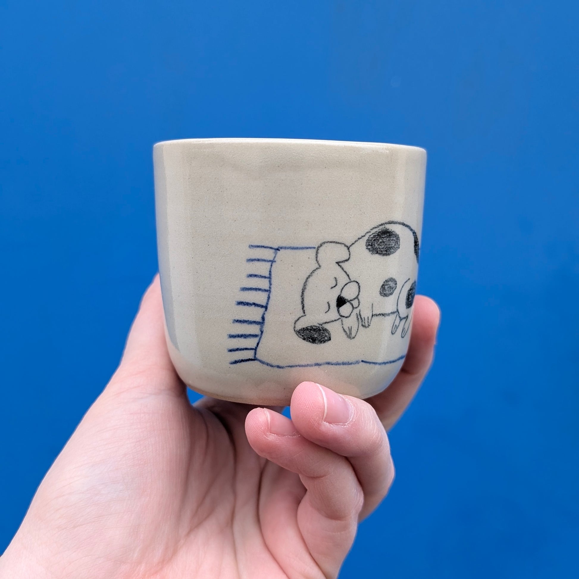 Šálka je ručne točená na hrnčiarskom kruhu, vyrobená z kameniny, pálenej na 1230 stupňov. Vďaka vysokému výpalu je šálka odolná, trvácna a môžete ju umývať v umývačke riadu.