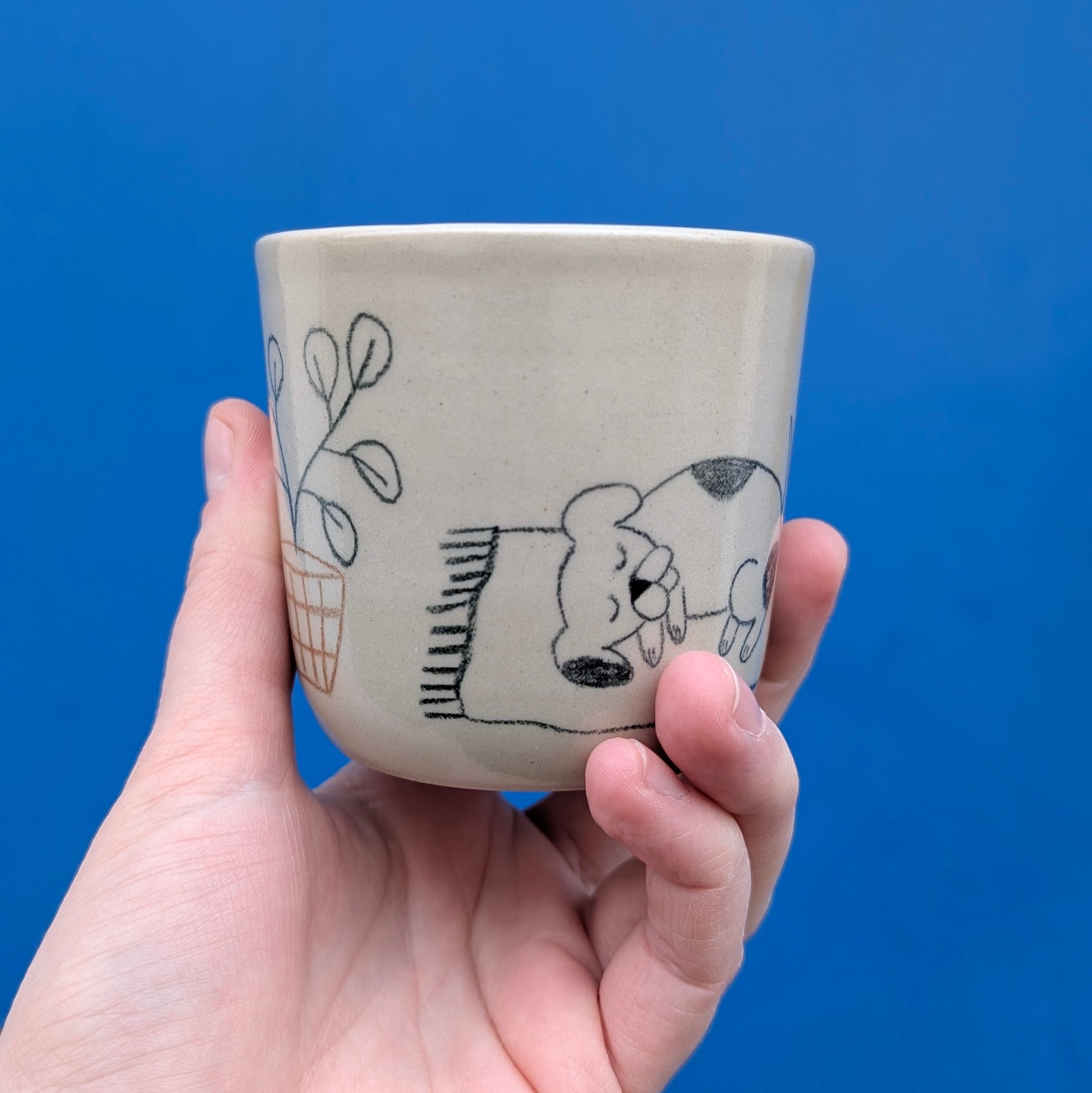 Šálka je ručne točená na hrnčiarskom kruhu, vyrobená z kameniny, pálenej na 1230 stupňov. Vďaka vysokému výpalu je šálka odolná, trvácna a môžete ju umývať v umývačke riadu.